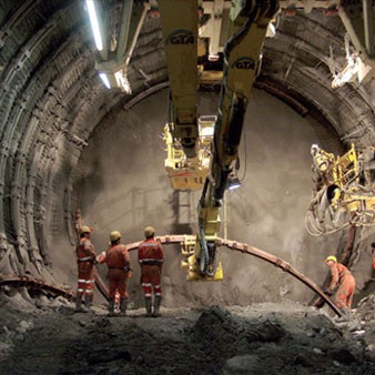 La construcción del túnel de base San Gotardo se llevó a cabo simultáneamente en cinco frentes de obra de diferente longitud: Ertsfeld, Amsteg, Sedrun, Faido y Bodio